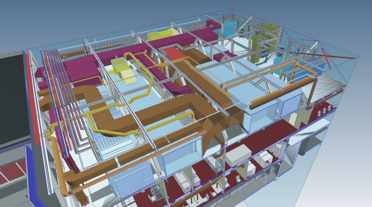 Ab der Entwurfsplanung erfolgt der Planaustausch in Form von IFC-Modellen. Hierdurch wird ein BIM-Prozess ermöglicht, in welchem Bauteile einerseits als 3D-Modelle darstellbar sind und andererseits relevante Informationen, wie beispielsweise Kälte- oder Heizleistung von einzelnen Objekten, übermittelt werden.